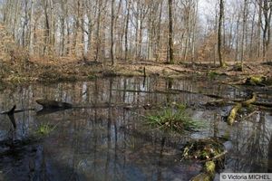 Le Triton alpestre (Ichthyosaura alpestris) est bien présent en plaine mais s’observe également en montagne jusqu’à 1000 m d’altitude. L’espèce se reproduit dans des milieux aquatiques de profondeurs variées en milieu forestier ou artificiel : mares forestières, ornières, gravières, étangs. Ce triton de taille moyenne (70 à 110 mm) présente une coloration bleuâtre chez le mâle et verdâtre chez la femelle sous la forme de marbrures. Le ventre et la gorge sont uniformément orangés. Une petite crête dorsale jaunâtre et noire est visible chez le mâle en période de reproduction.